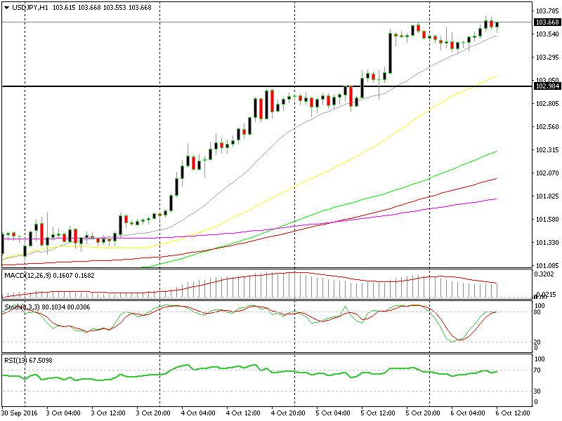 Der gleitende Durchschnitt 20 macht einen guten Job, das USD/JPY-Paar hochzudrücken.